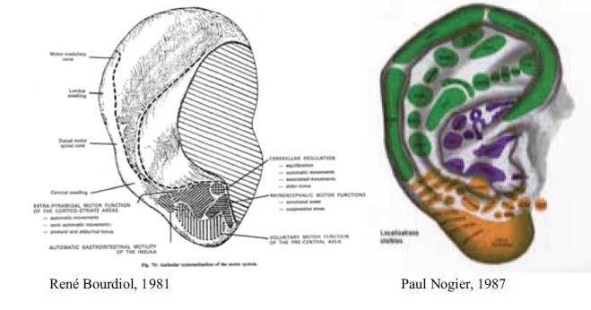 C’est ainsi que Paul Nogier a pu dresser une carte détaillée des correspondances auriculaires. Ces recherches basées sur un phénomène subjectif ont nécessité des préparations biologiques et anatomiques longues et fastidieuses.